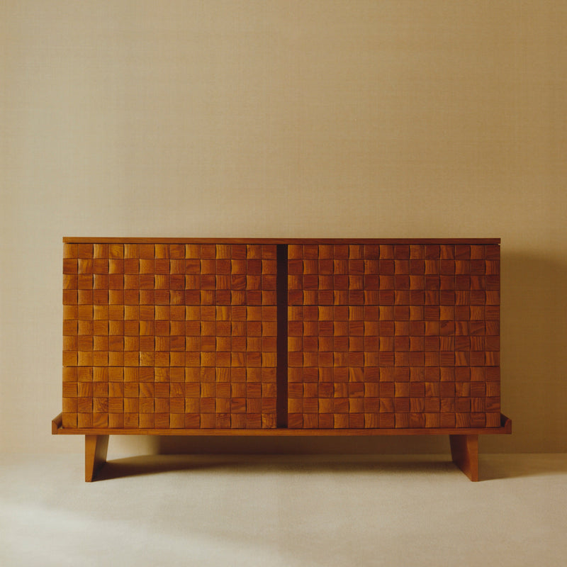 The Sideboard , c. 1927, follows in the continuity of the Cabinet, also designed by Jean-Michel Frank in the same period. The decorator employed a gouging technique that emphasizes the natural singularity of the material. With these clean lines, Frank eschews all superfluous ornamentation, distilling the piece to the very essence of its function.